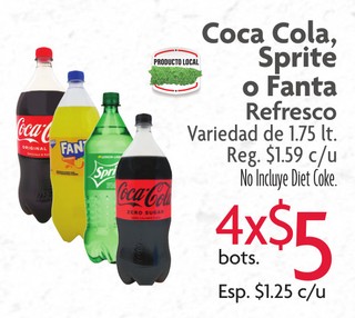 Coca Cola, Sprite o Fanta Refresco Variedad de 1.75 lt.