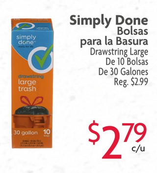 Simply Done Bolsas para la Basura Drawstring Large De 10 Bolsas De 30 Galones