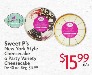 Sweet P's New York Style Cheesecake o Party Variety Cheesecake De 40 oz.