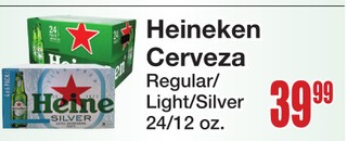 Heineken cerveza regular/light/ silver 24/12 oz.