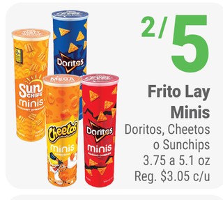 Frito Lay Minis Doritos, Cheetos o Sunchips 3.75 a 5.1 oz.