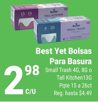 Best Yet Bolsas Para Basura Small Trash 4G, 8G o Tall Kitchen 13G Pqte. 15 a 26ct