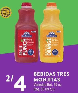 BEBIDAS TRES MONJITAS Variedad Bot. 59 oz