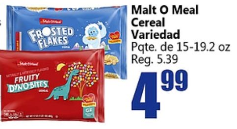 frosted flakes fruity dyno bites malt meal cereal variedad pqte reg.