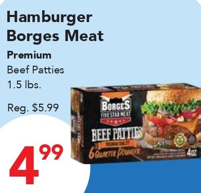 hamburger borges meat premium beef patties reg. $borges five star