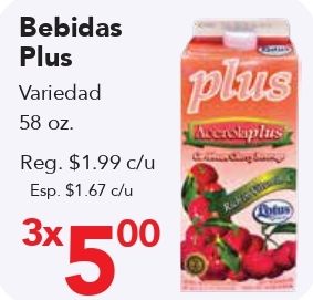 bebidas plus variedad reg. $c/u esp. *plus averslaplus totus