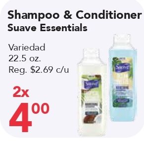 shampoo conditioner suave essentials variedad reg. $c/u swner