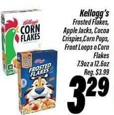kellogg's holly corn frosted flakes apple jacks, cocoa crispies,corn pops, froot loops