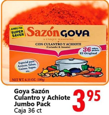 jumbo super saver sazón goya unique seasoning culantro achiote (coriander annette) original especial arroces salsas, guisos, sopas, pack caja