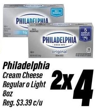 philadelphia original simple cream cheese regular light $c/u