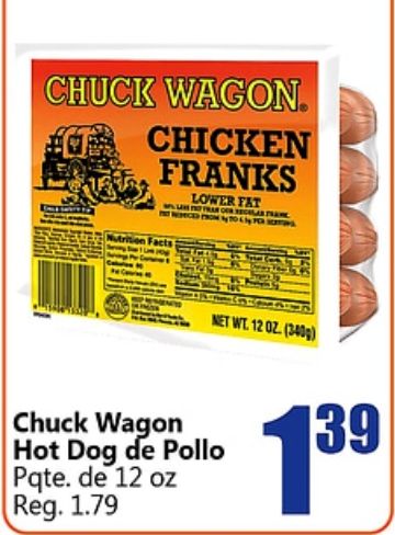 chuck wagon chicken franks lower nutrition facts pollo pqte. reg.