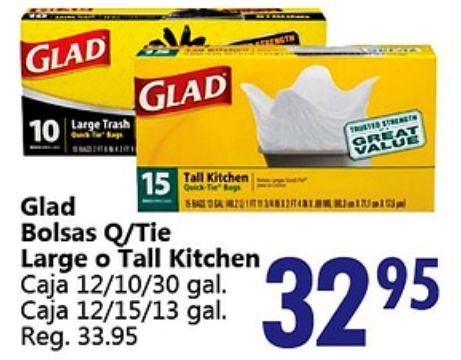 glad large trash tall kitchen quick bags bolsas q/tie caja //al //al. reg. reat value