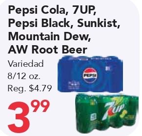 pepsi cola black, sunkist, mountain dew, root beer variedad reg.
