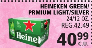 HEINEKEN GREEN/PRMIUM LIGHT/SILVER 24/12 OZ.