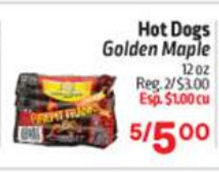 Hot Dogs Golden Maple 12 oz. Reg. 2/3.00