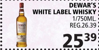 DEWAR'S WHITE LABEL WHISKY 1/750ML.
