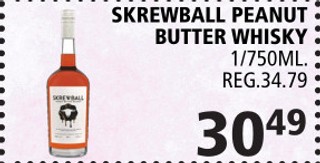 SKREWBALL PEANUT BUTTER WHISKY 1/750ML.
