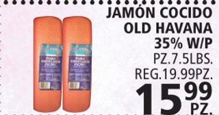 JAMON COCIDO OLD HAVANA 35% W/P PZ.7.5LBS.