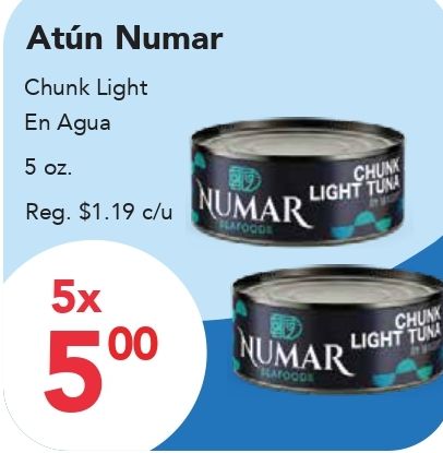 atĂșn numar chunk light agua reg. $c/u seafoods tuna hafoods