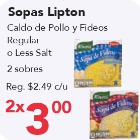 sopas lipton caldo pollo fideos regular less salt sobres $c/u xsapa sopa fidy