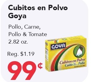 cubitos polvo goya pollo carne, tomate gova reg. cabitos calde polle