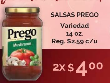prego mushroom salsas variedad reg. $c/u
