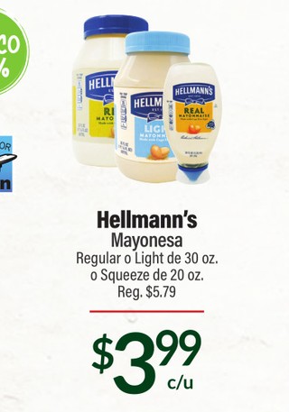 Hellmann´s mayonesa regular o light de 30 oz. o squeeze de 20 oz.