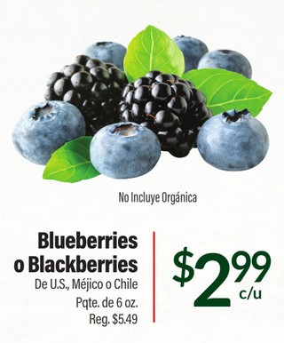 Blueberries o Blackberries De U.S. Mejico o Chile Pqte. de 6 oz.