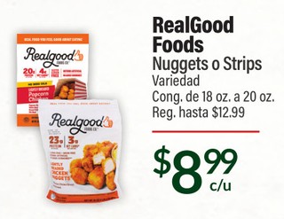 RealGood Foods Nuggets o Strips Variedad Cong. de 18 oz. a 20 oz.