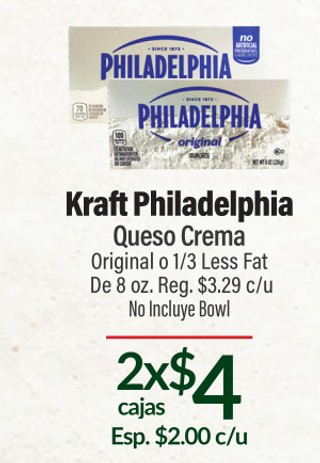 Kraft Philadelphia Queso Crema Original o 1/3 Less Fat De 8 oz.