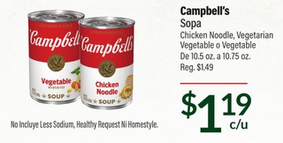 Campbell's Sopa Chicken Noodle, Vegetarian Vegetable o Vegetable De 10.5 oz. a 10.75 oz.