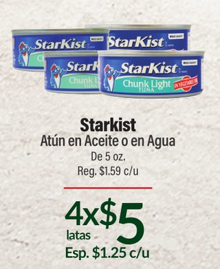 Starkist Atún en Aceite o en Agua De 5 oz.