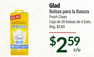 Glad Bolsas para la Basura Fresh Clean Caja de 26 bolsas de 4 Gals.