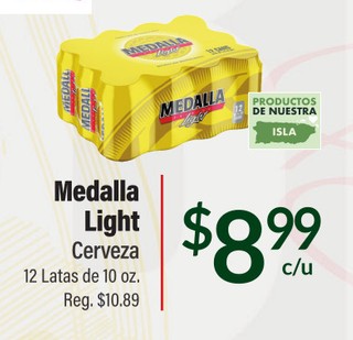 Medalla Light Cerveza 12 Latas de 10 oz.