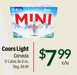 Coors Light Cerveza 12 Latas de 8 oz.