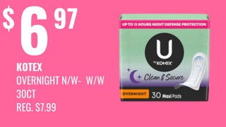 Kotex overnight n/w - w/w 30ct