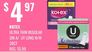 Kotex ultra thin regular sin a/ ut long n/w 20ct