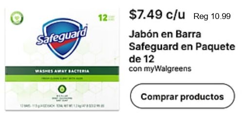 safeguard washes away bacteria $c/u jabón barra paquete mywalgreens comprar productos