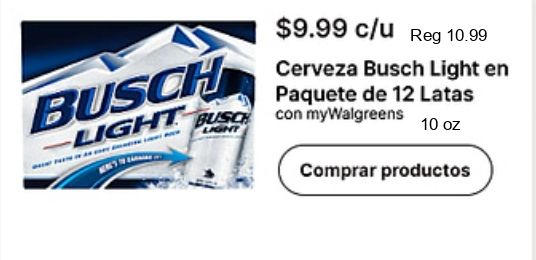busch -light $c/u cerveza light paquete latas mywalgreens comprar productos