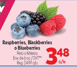 Raspberries, Blackberries o Blueberries Perú o México Env. de 6 oz./SVT** .