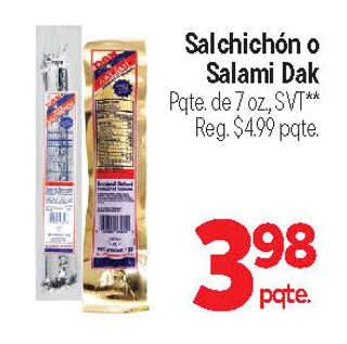 Salchichón o Salami Dak Pqte. de 7 oz., SVT**