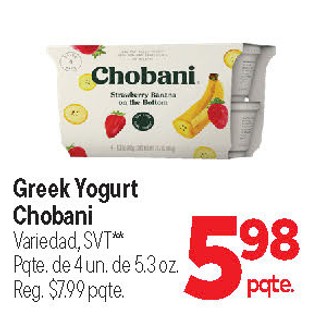Greek Yogurt Chobani Variedad, SVT** Pqte. de 4 un. de 5.3 oz.