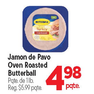 Jamon de Pavo Oven Roasted Butterball Pqte. de 1lb.