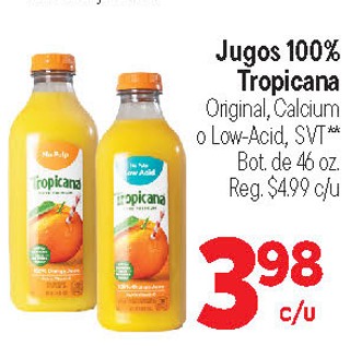 Jugos 100% Tropicana Original, Calcium o Low-Acid, SVT** Bot. de 46 oz.