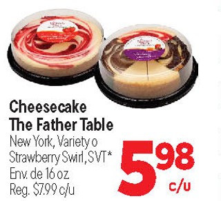Cheesecake the father table new york, variety o strawberry swirl, svt* env. de 16 oz.