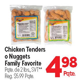 Chicken tenders o nuggets family favorite pqte. de 2 lbs., svt**