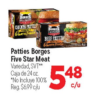 Patties borges five star meat variedad, svt** caja de 24 oz. *no incluye 100%