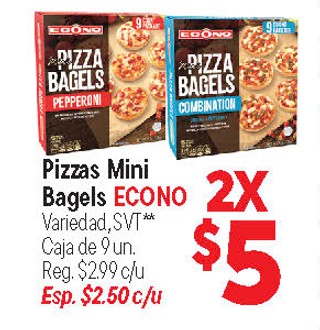 Pizzas mini bagels econo variedad, svt** caja de 9 un.