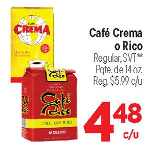 Café Crema o Rico Regular, SVT** Pqte. de 14 oz