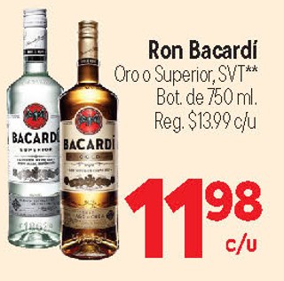 Ron Bacardi Oro o Superior, SVT** Bot. de 750 ml.